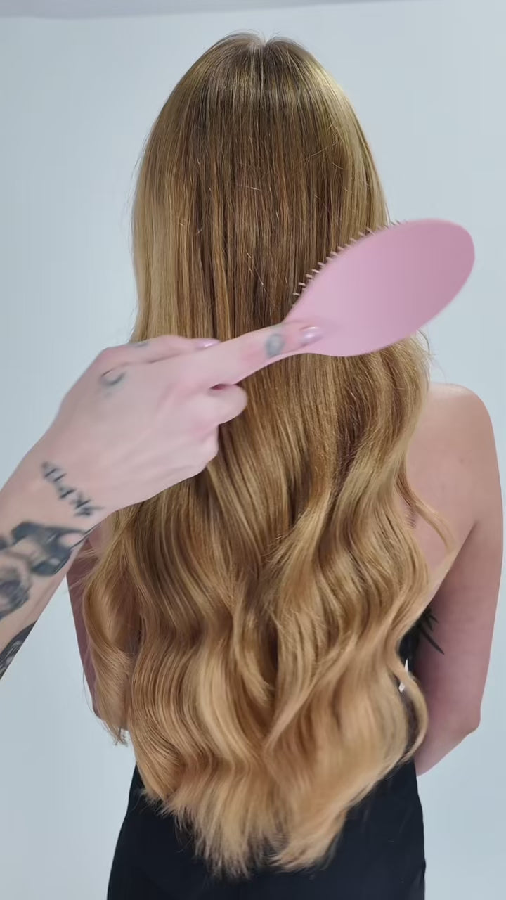 Keep your extensions looking soft, smooth, and long-lasting with the right care. Gently brush daily using an extension brush, starting from the ends and working your way up to prevent tangling and protect the wefts.